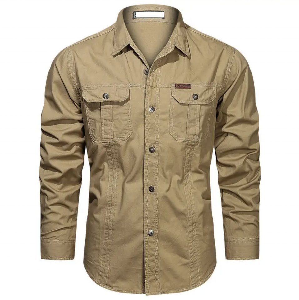 Custom Hot Sale Outdoor Khaki Gray Men Casual Shirt Long Sleeve Cotton Slim Fit Men's Loose Lapel Shirt Solid Colour Shirts