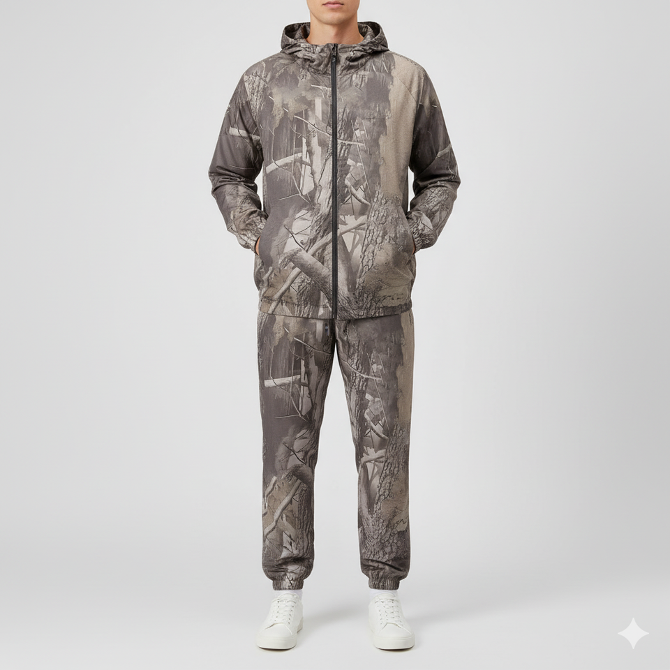 Custom Hot Selling Hunting Polyester Tracksuits Full Printed Camo Long Sleeves Hooded Hunting Hoodies Joggers Tracksuits