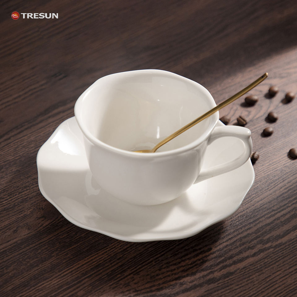 Custom Hotel White Cappuccino Espresso Cups Porcelain Ceramic Tea Cup Set with Saucer Ins Ceramic Coffee Cups Set for Tea