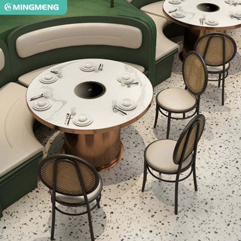 Custom Hotpot Restaurant Furniture Luxury Granite Hospitality Western Commercial Marble Restaurant Furniture Table and Chair Set