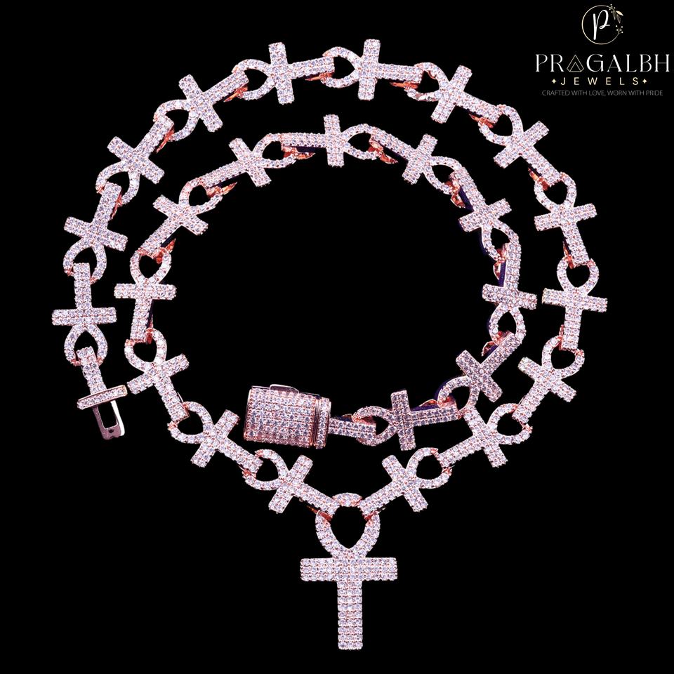 Hip Hop Rock Style Rapper Fashion Jewelry Personalized Custom Ankh Necklace Iced Out Moissanite Cross Pendant Cuban Chain