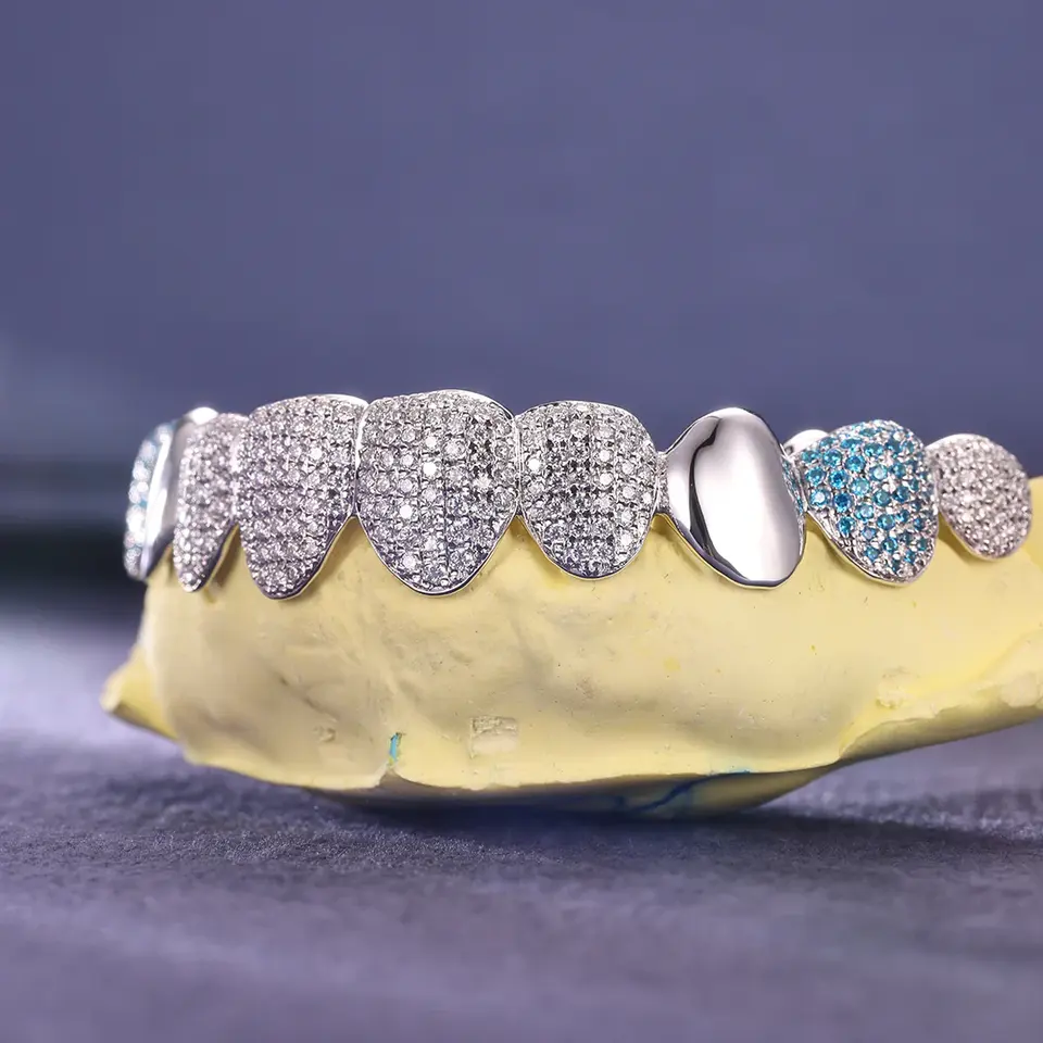 Custom Iced Out Fine Grillz-925 Sterling Silver Lab Grown Diamonds VVS Clarity 16 Teeth