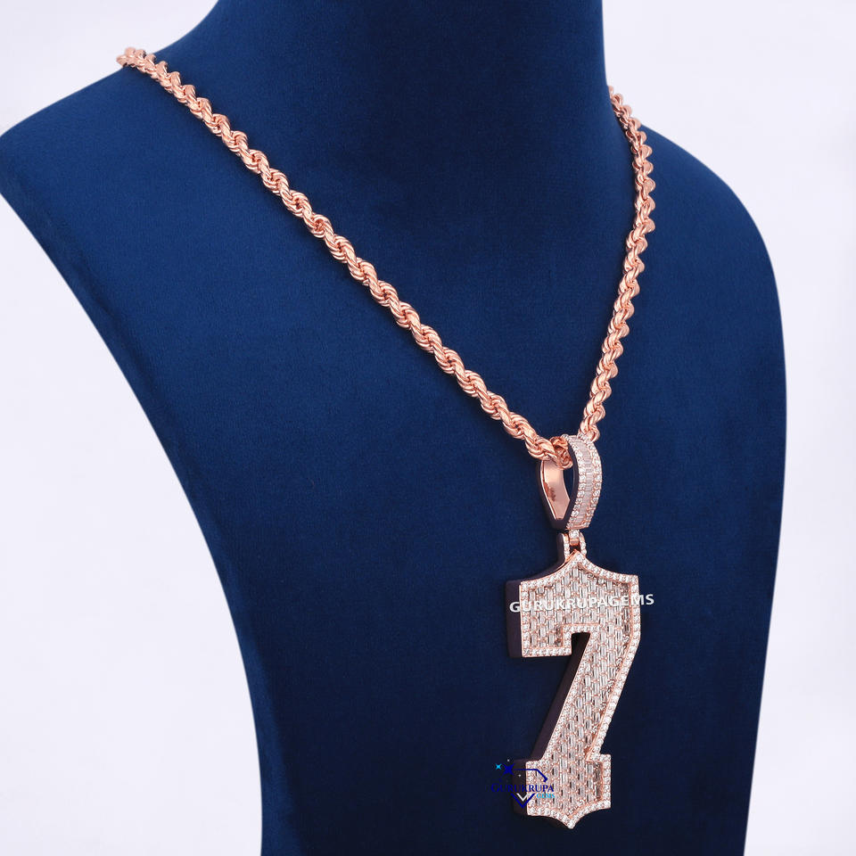 Custom Iced Out Hip Hop VVS Lab Grown Diamond 7 Numeric Pendant 14Kt Rose Gold Rope Chain Silver Necklaces for Men