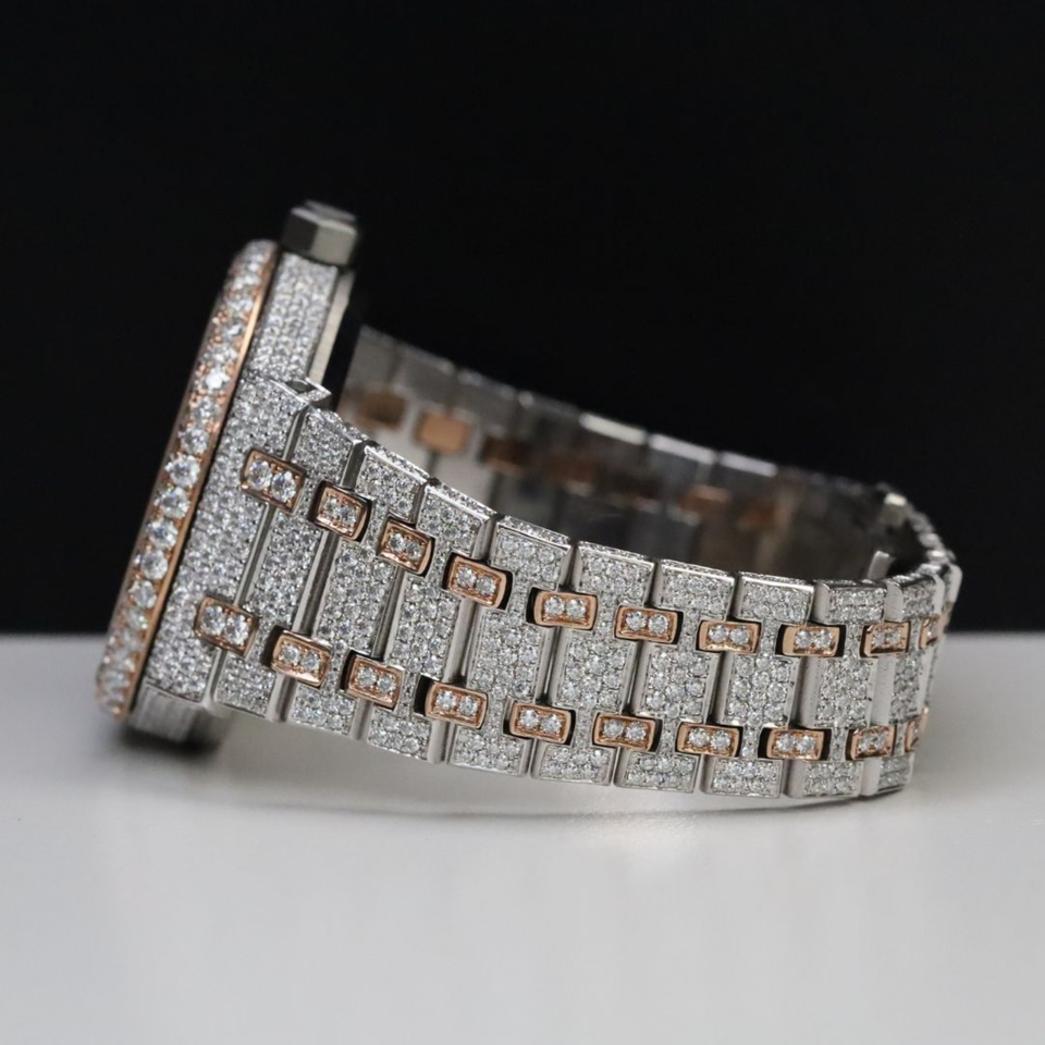 Custom Iced Out Rose Gold Watch Luxury Men's Full Diamond Bling Hip Hop Rapper Wristwatch Silver Tone Streetwear Fashion Gift