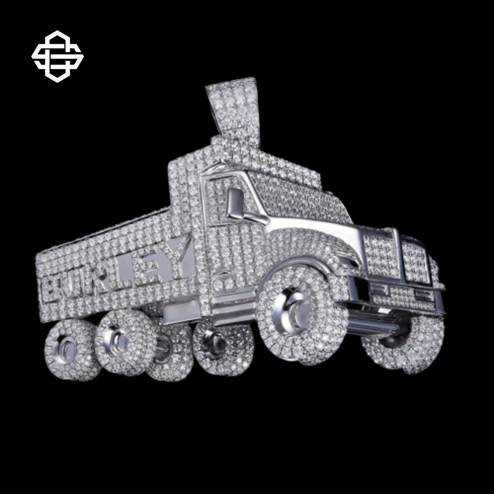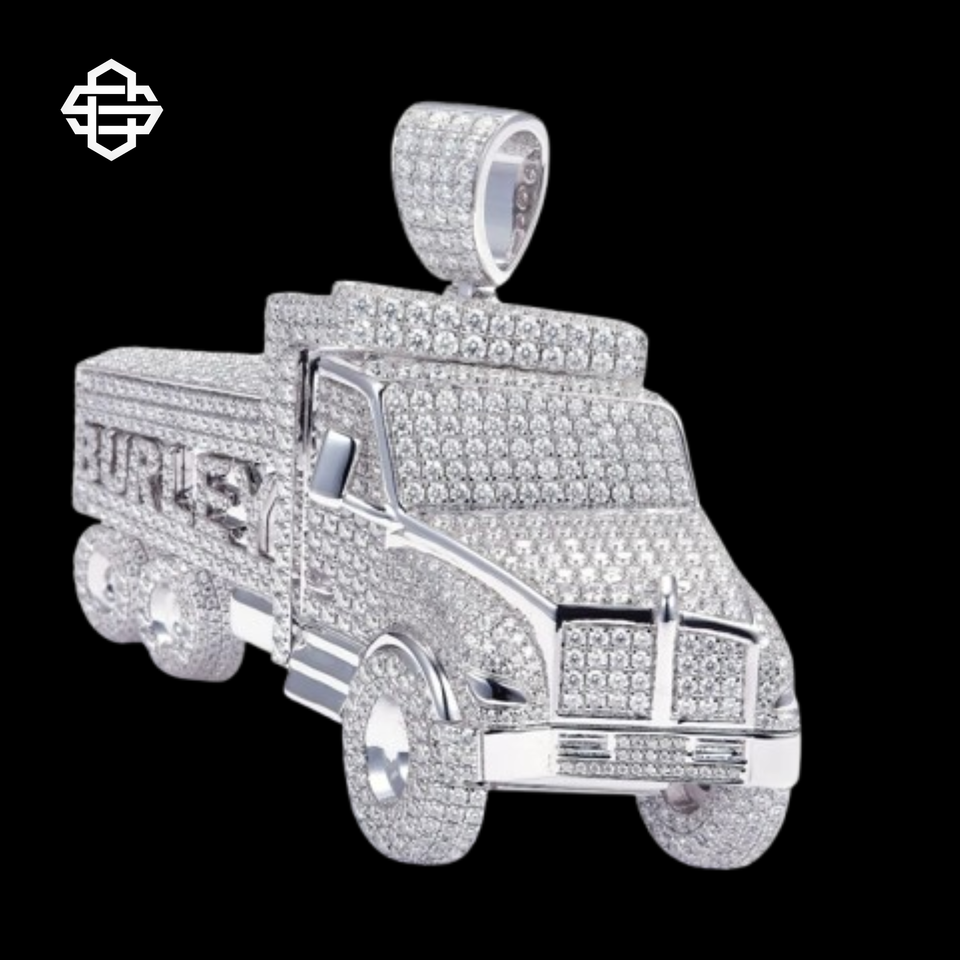 Custom Iced Out Truck Pendant Necklace for Men Hip Hop Bling CZ Diamond Simulated Pendant Silver Plated Rapper Jewelry Gift