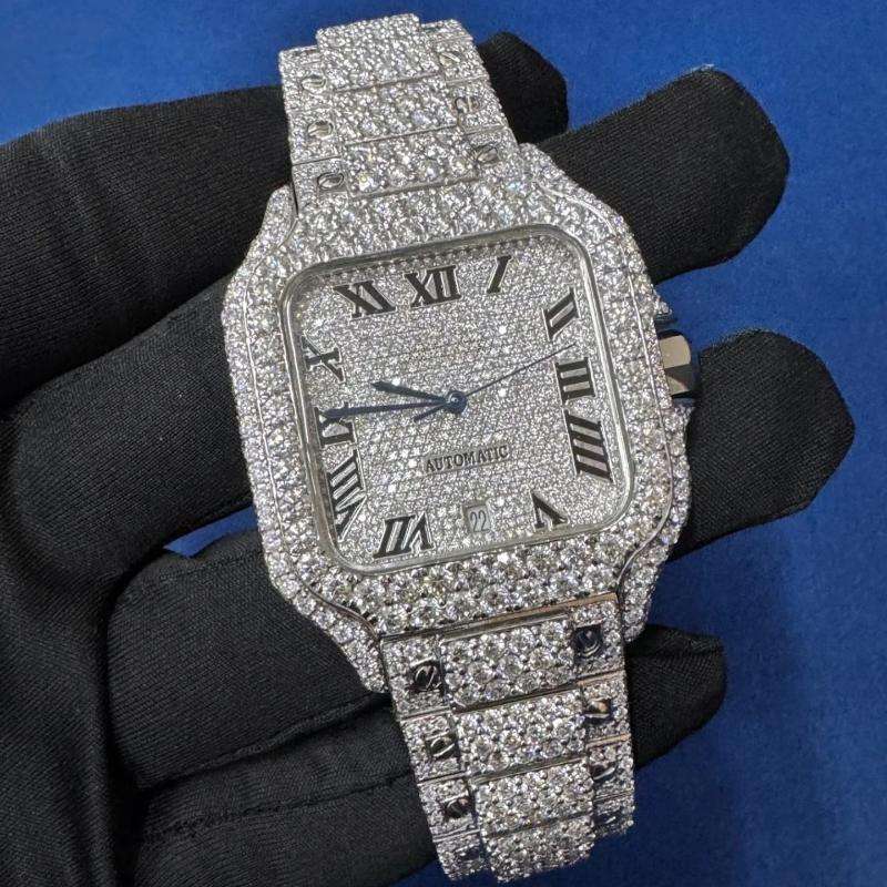 Custom Iced Watch VVS Clarity Moissanite Diamond Watch for Men & Women Quartz Analog Timepiece Glass Dial Window Business Style