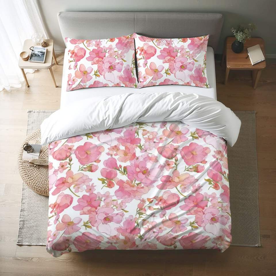 Custom Image Queen Luxury Duvet Cover Set Woven Floral Pattern 4-Piece Bedding Polyester Filling Cool Feature Home