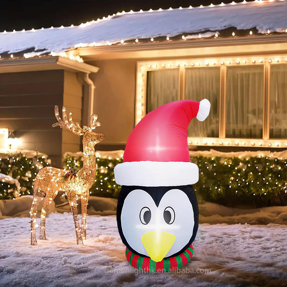 Custom 3.5FT Penguin Head Inflatable for Indoor/Outdoor LED Light-Up Holiday Party Decor Xmas Hat IP44 for Home Garden Lawn