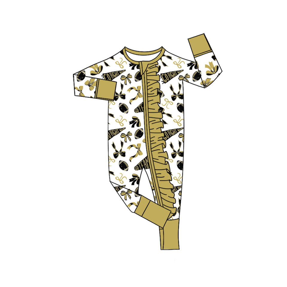 Custom Infant baby Blue bows football go team print kids wholesale romper long sleeve jumpsuit child cute sleeper set