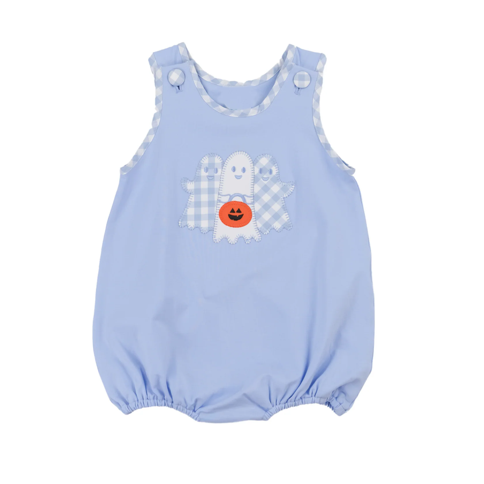 Custom Infant baby blue spooky Pumpkin print kids wholesale romper sleeveless jumpsuit child cute set