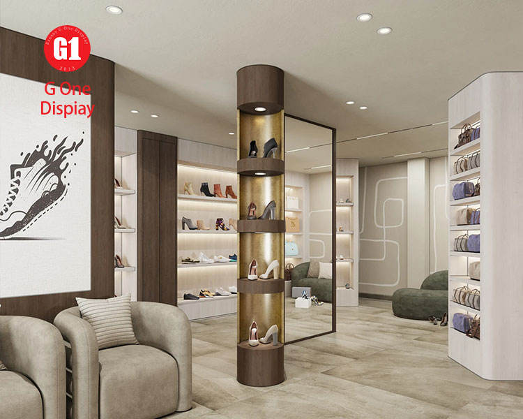 Custom Interior Display Furniture for Modern Shoe Stores Interior Renovation Design for Handbag Stores