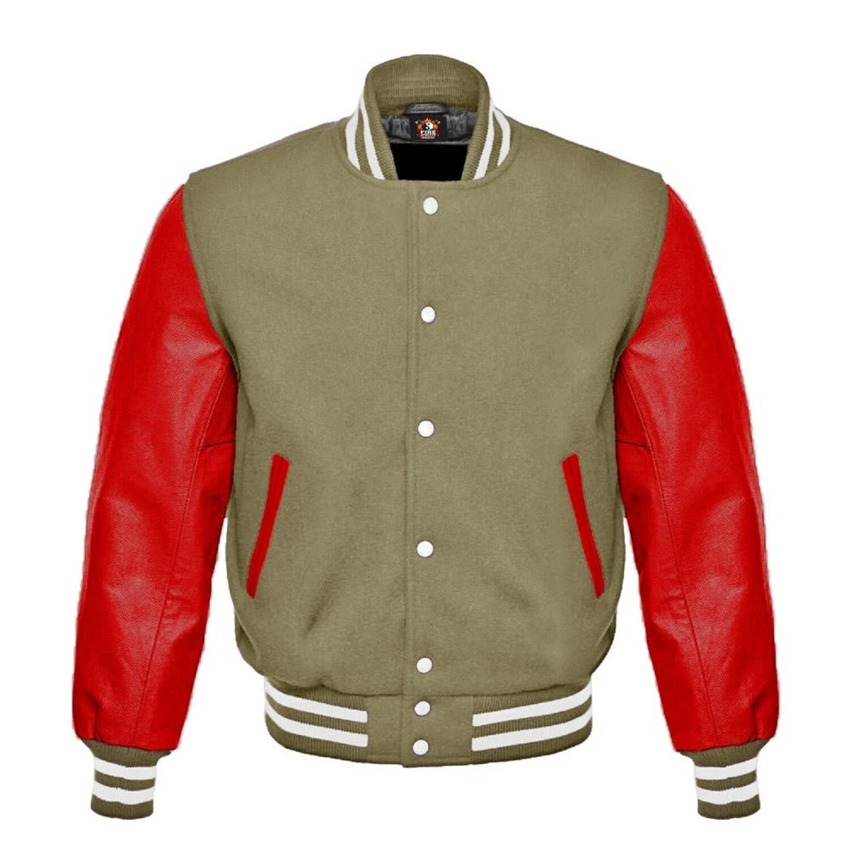 Custom Jacket Cream Beige Wool Red Real Leather Sleeves Letterman Baseball Varsity Jacket