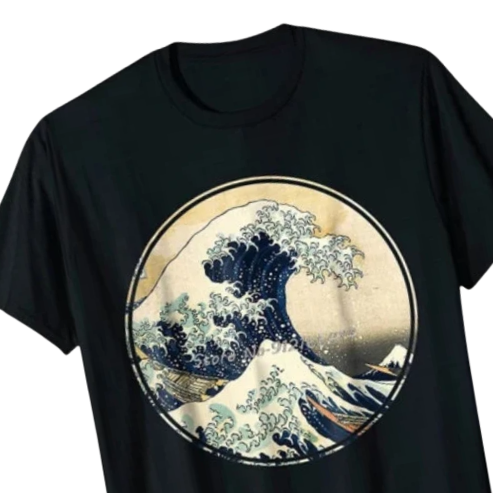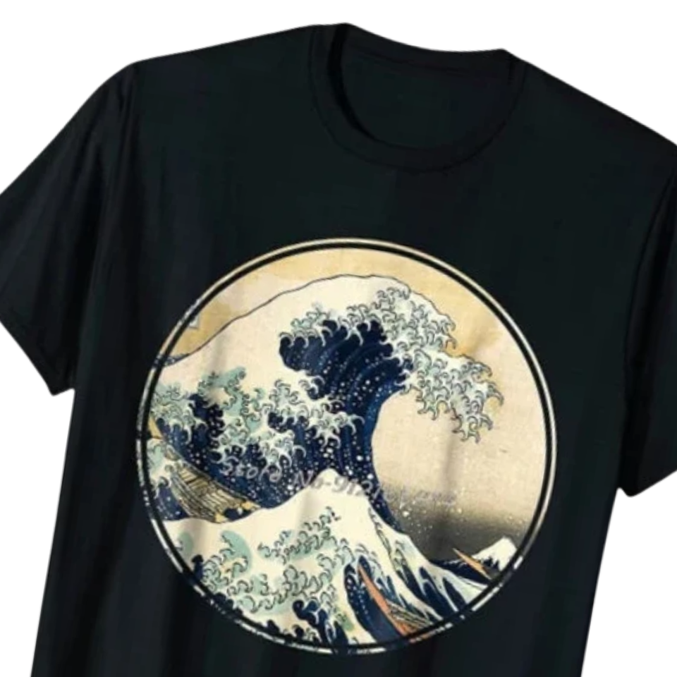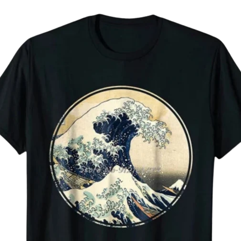 Custom Japanese Wave Art Printed T Shirt Aesthetic Ocean Graphic Tee Unisex Cotton Casual Streetwear Classic Design OEM Custom