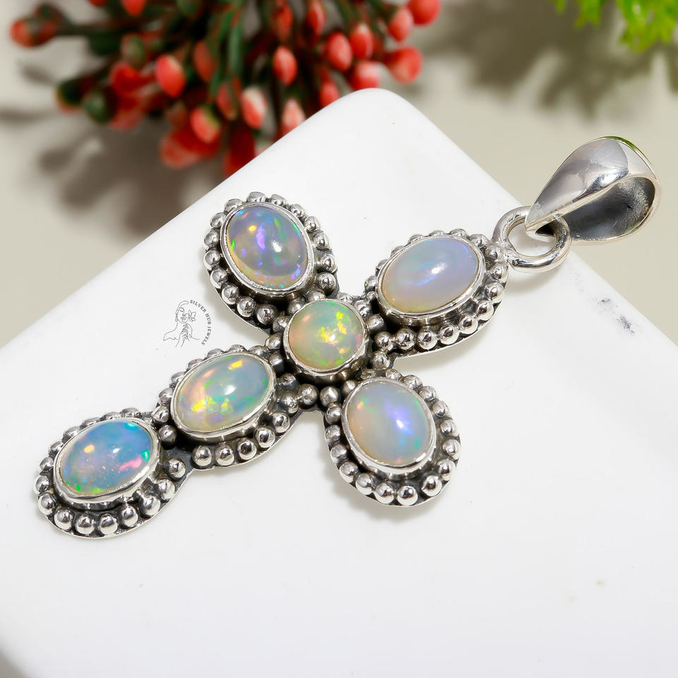 Custom Jewelry 925 Sterling Silver Ethiopian Opal Oval Cut Bezel Set Gemstone Cross Pendant Fine Jewelry Pendants & Charms
