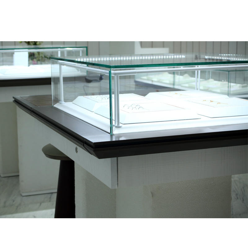 Custom Jewelry Display Showcase Standing Gold Jewellery Display Glass Led Cabinets Light Luxury Top Counter Store