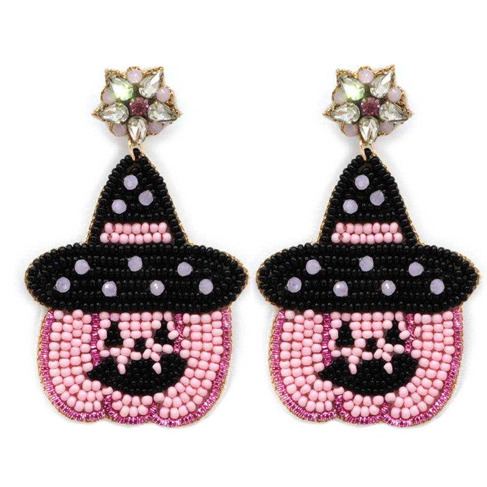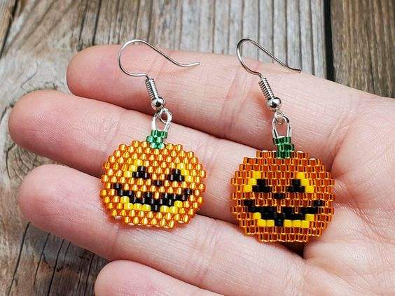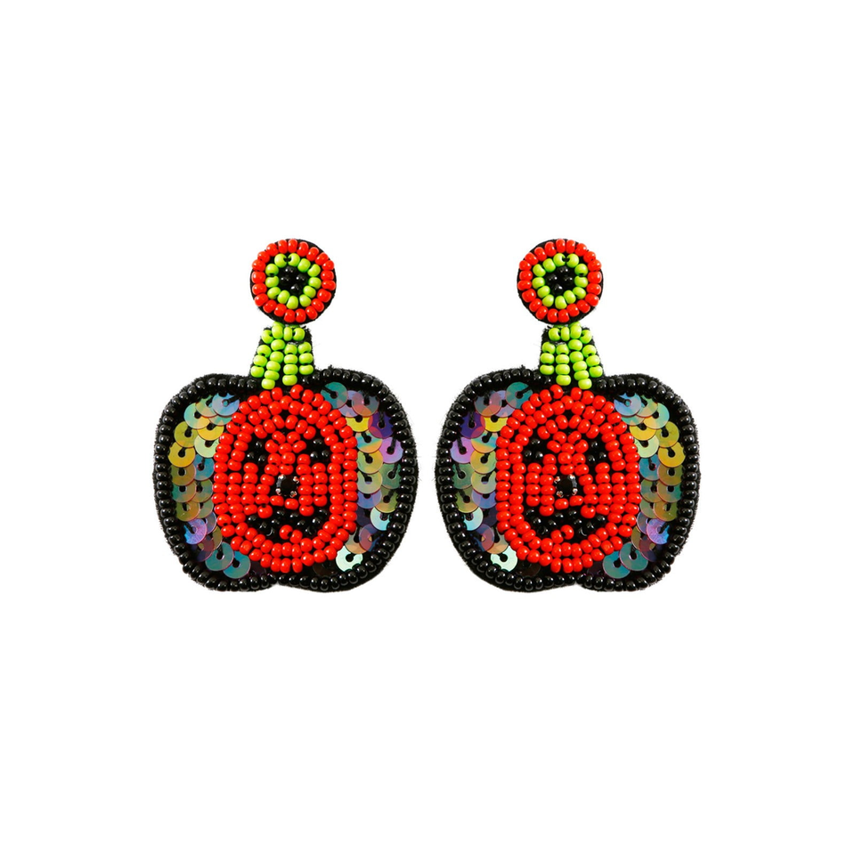 Custom Jewelry Embroidery Pumpkin Earrings for Halloween Best Design Trendy Seed Beads Halloween Pumpkin Earrings