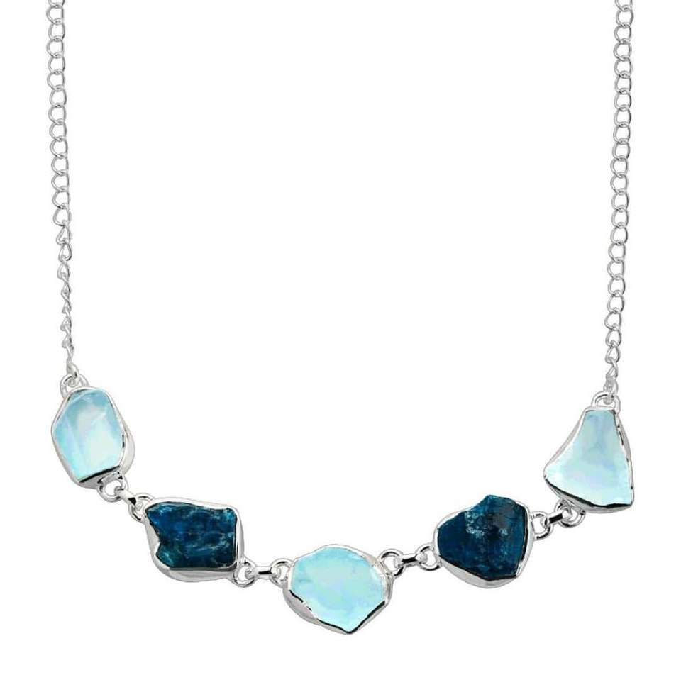 Product name:Aquamarine & Apatite Rough 925 Sterling Silver Necklace Statement