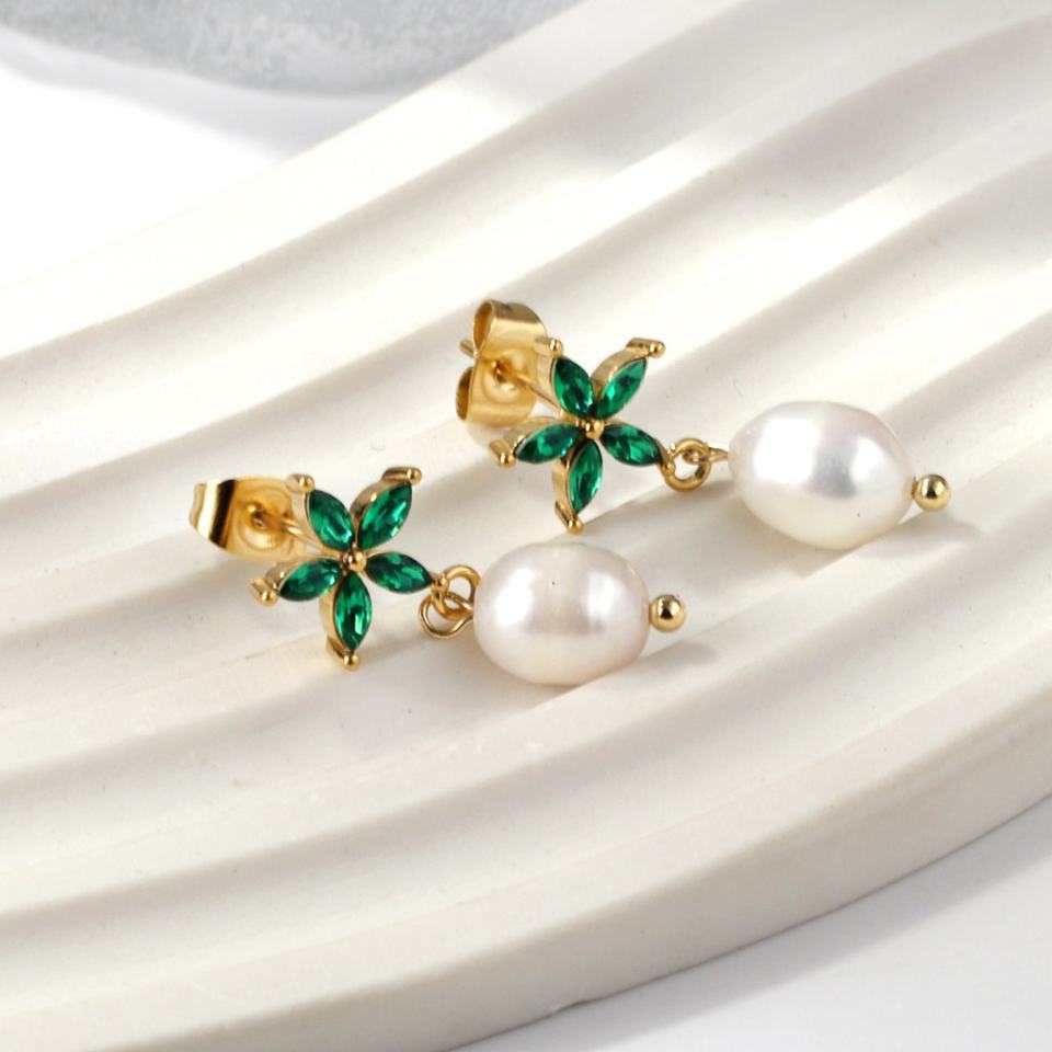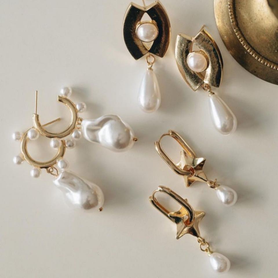 Custom Jewelry Simple Irregular Stainless Steel Hoop Stud Earring 18K Gold Plated Jewelry Pearl Drop Earrings