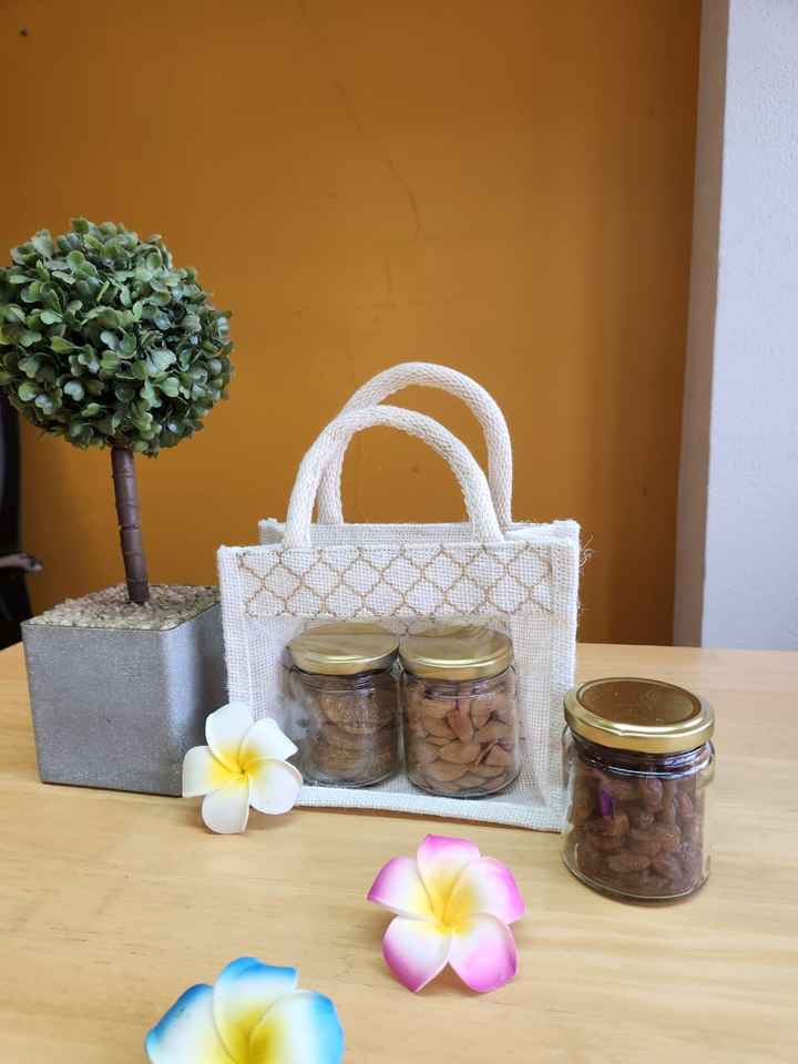 Custom Logo Jute Hamper Gift Bags with PVC Window, Eco-Friendly Reusable Packaging for Corporate Gifts, Jars, Bulk Wholesale