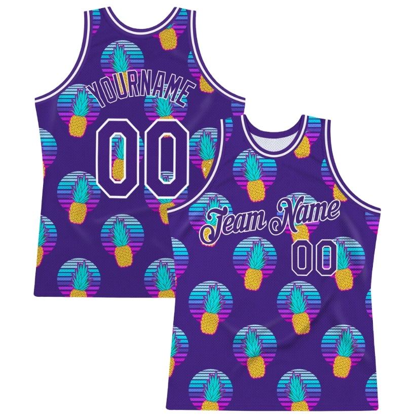 Custom Kelly Green Purple-Gold 3D Pattern Design Palm Trees Pineapples Authentic Basketball Jersey