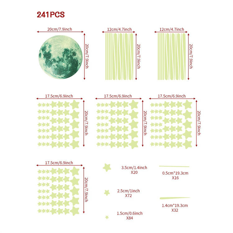 Custom PVC Kids Bedroom Glowing in the Dark Art Stickers Adhesive Wall Decor Moon Star Fluorescent Waterproof UV Resistant