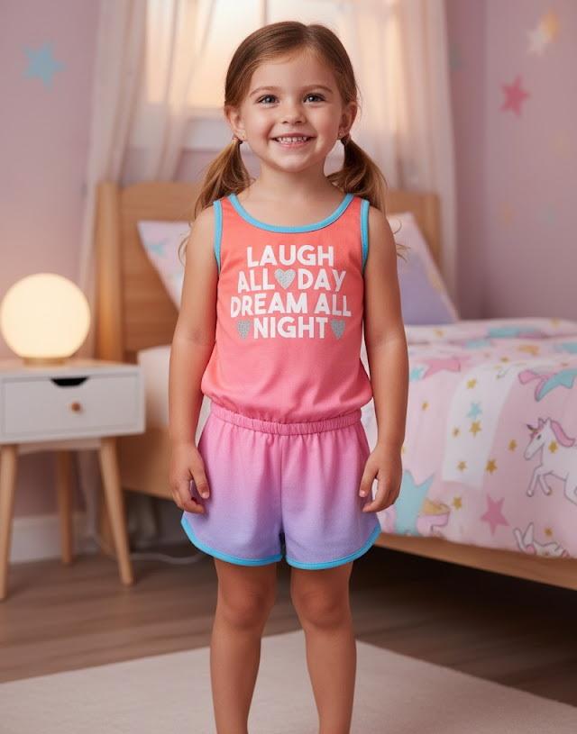 Keywords 1:girls foil print pajamas, inspirational quote sleepwear