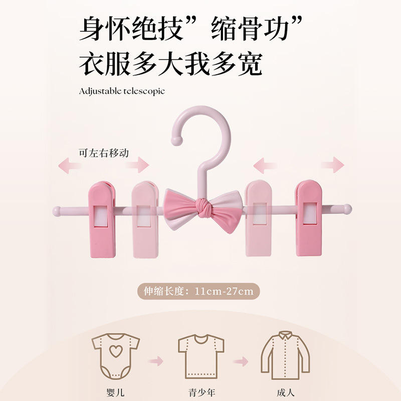 Custom Kids Plastic Rectangle Pant Clips Adjustable Hanger Patent for Baby Clothes Storage Organizer Blue Pink Color Hook Type
