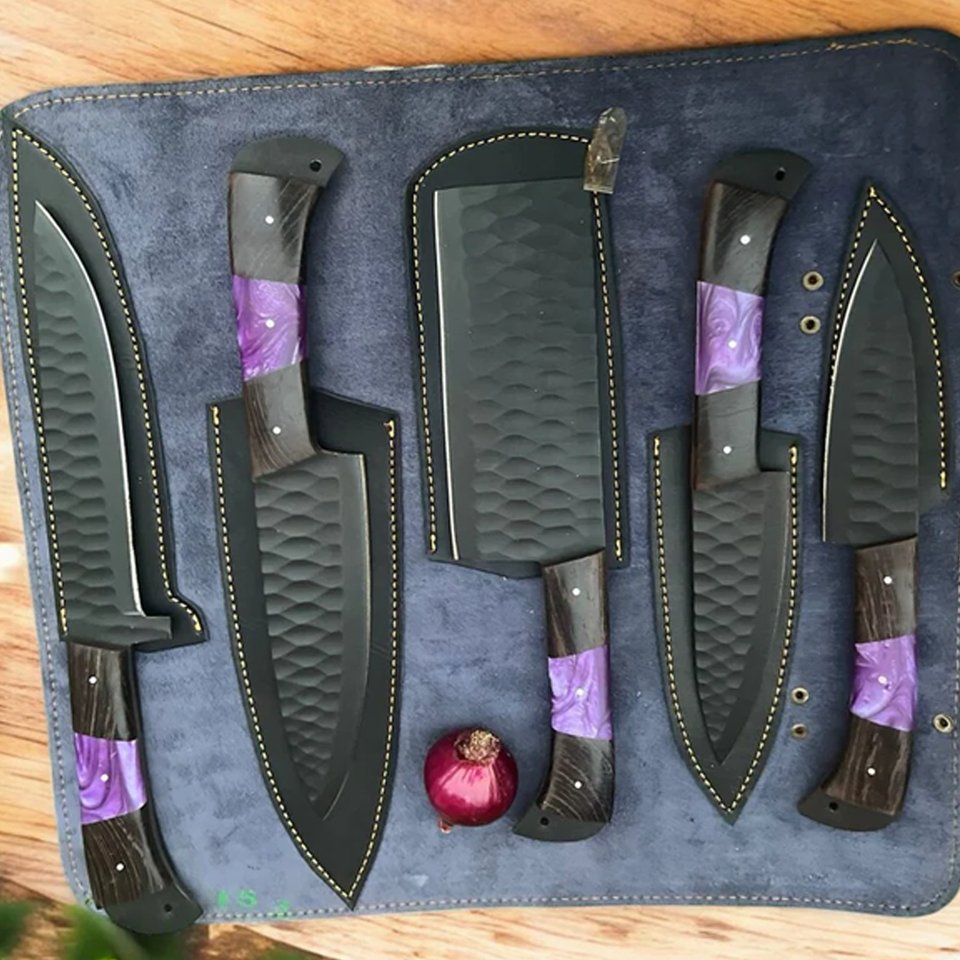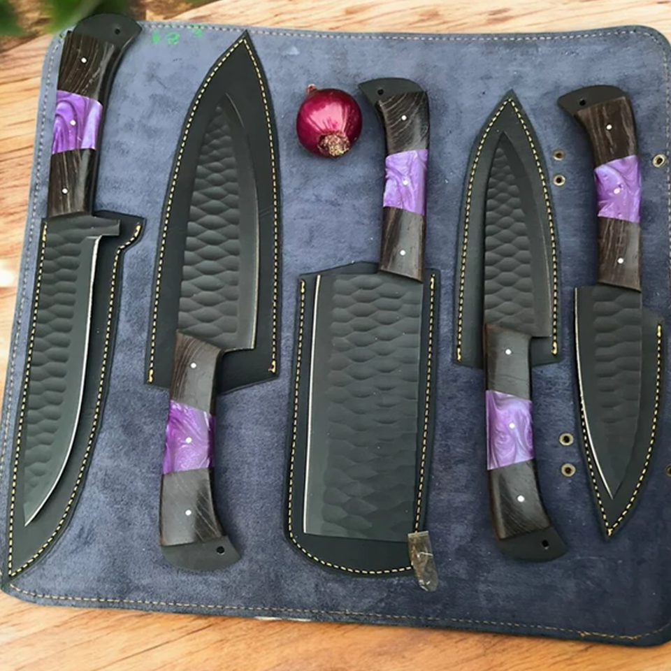 Customizable 5 PCS Damascus Stainless Steel Kitchen Chef Knife Set Hand Forged Personalized Collection Handmade Kitchen Tools
