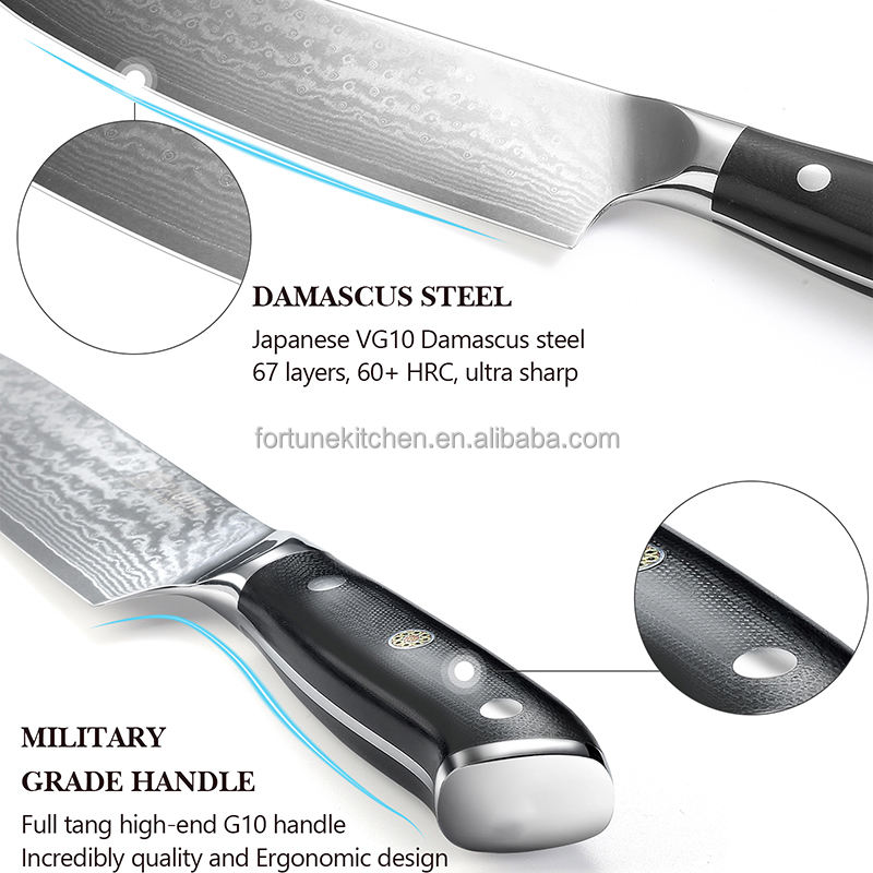 Custom Kitchen Knife Set Luxury Japanese Damascus Cooking Knife Ultility Vg10 High Carbon Steel Chef Knife