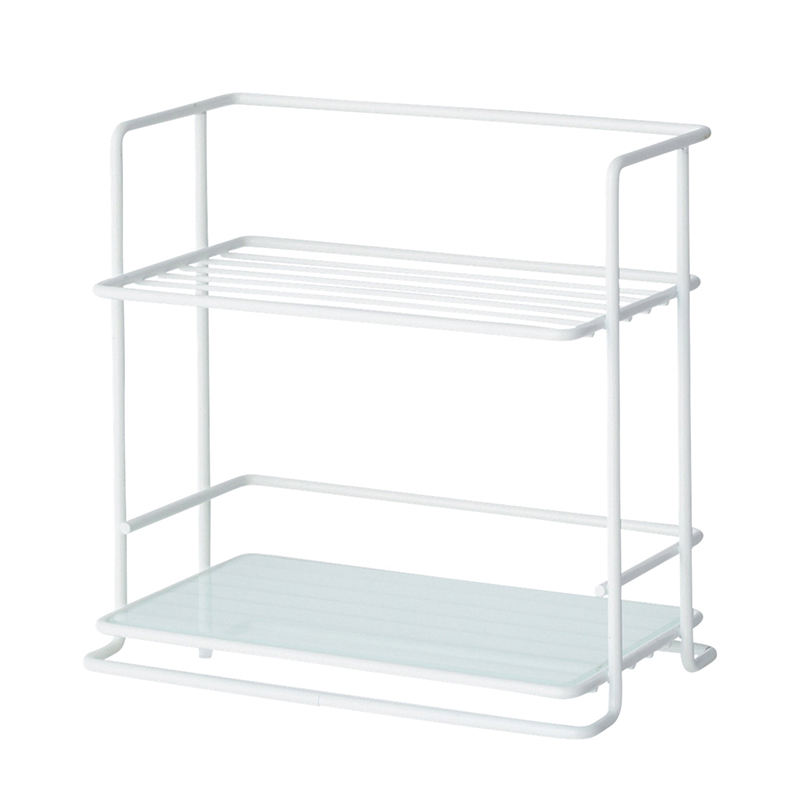 Custom Kitchen Rack Simple Stainless Steel Double-Layer Storage Shelf with Copper and Glass Metal Bowl Holder