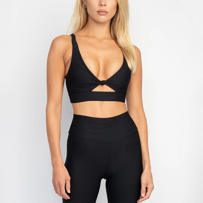 Custom Knot-Front Yoga Set for Women Strappy Back Seamless Gym Fitness Activewear High-Waist Leggings and Shorts