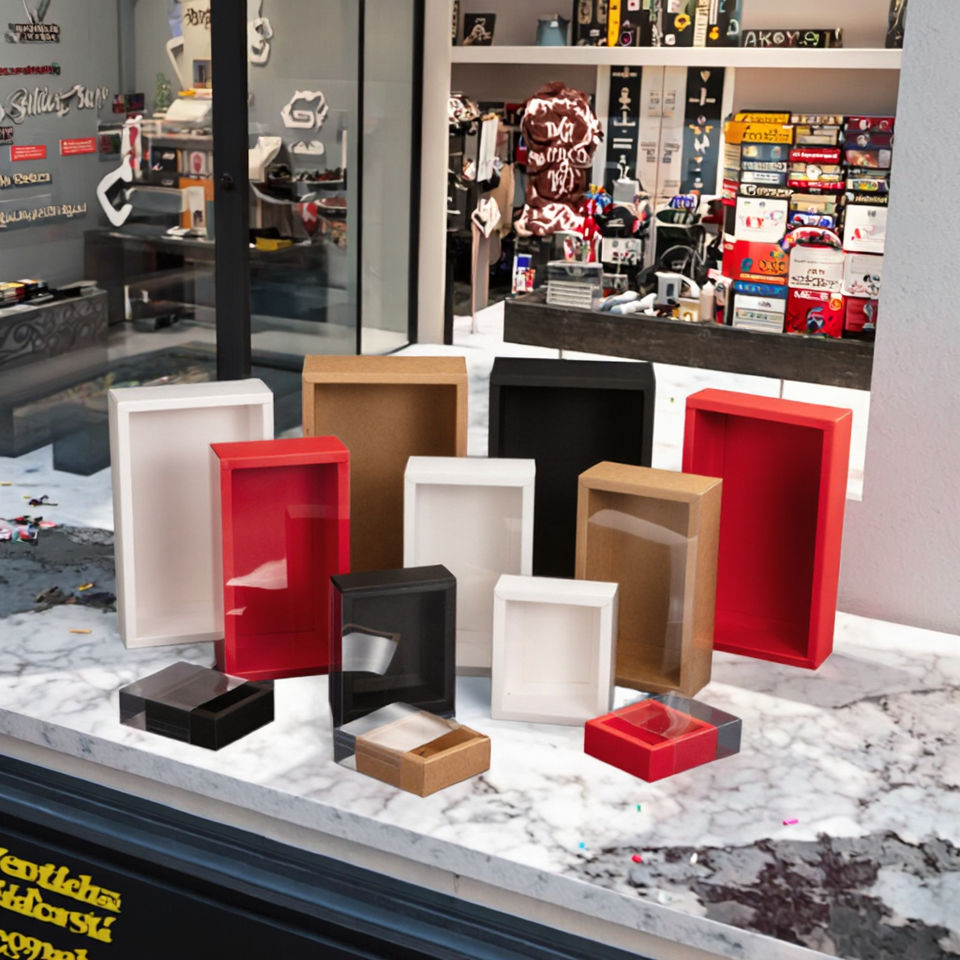 Custom Kraft Paper Gift Box PVC Frosted Transparent Lid Rectangle Cosmetic Packaging Flat Red Black White Cardboard Wig Embossed