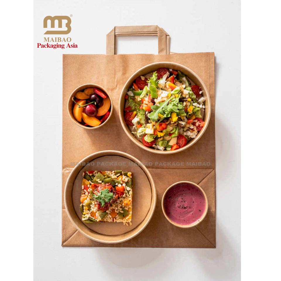Custom Kraft Paper Square Bottom Recycled Lunch Salad Takeaway Packaging Flexo Printed Logo for Supermarket Food Exhibition