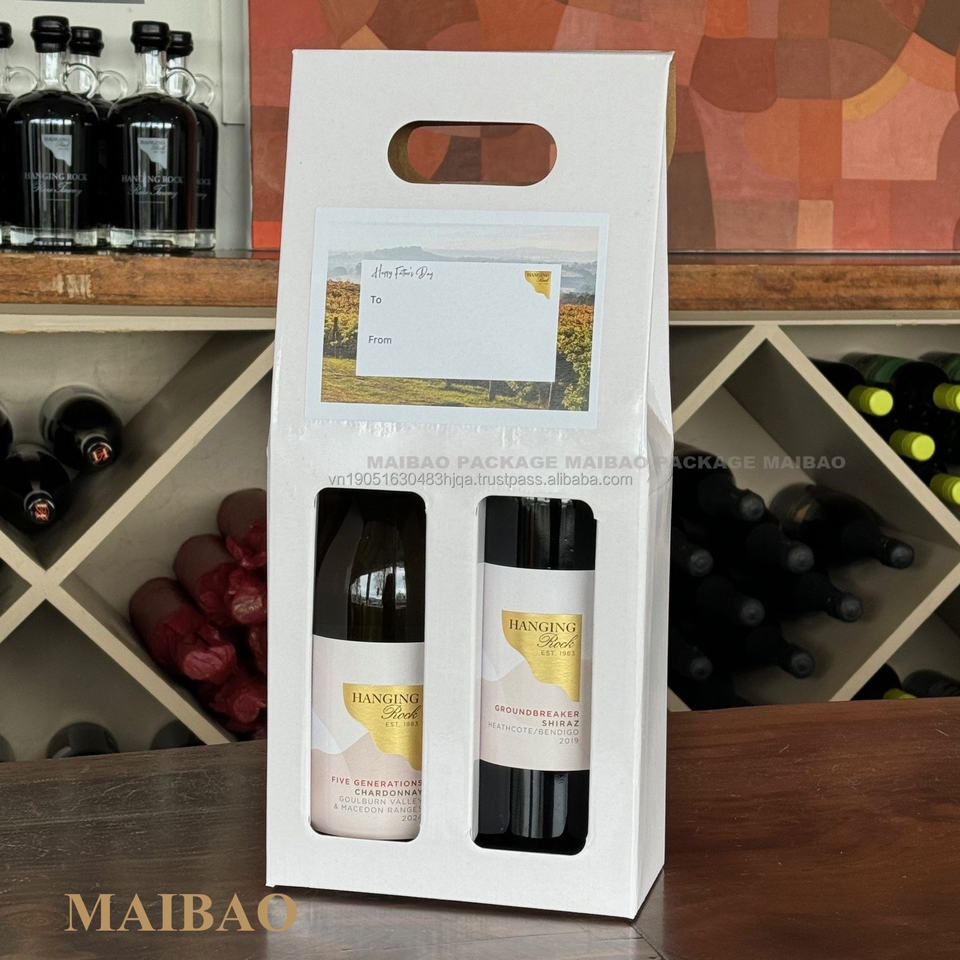 Custom Kraft Wine Carrier Paper Bag 2 Bottle for Wineries Chateau Paperboard Paper Bag With Die Cut Window Carrying Handle
