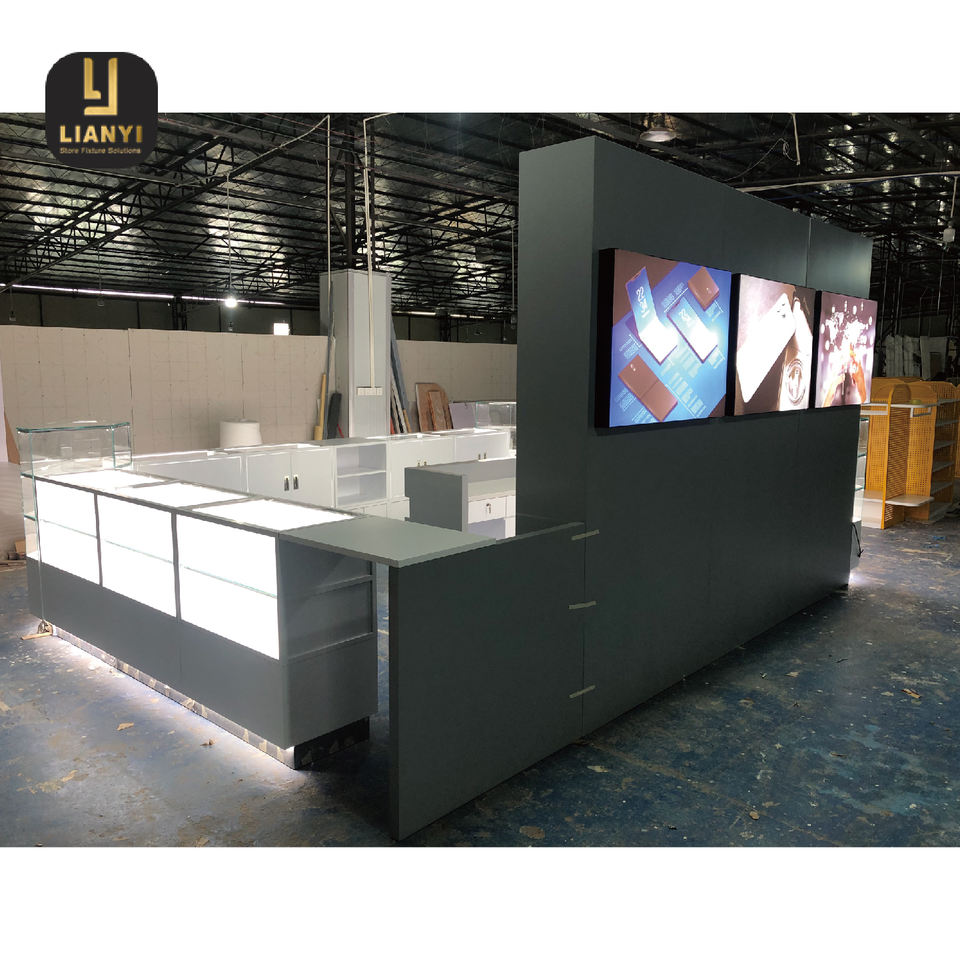 Custom LED Corner Display Cabinet for Mobile Retail ODM Service to Fit Any Store Layout with Specific Size and Branding