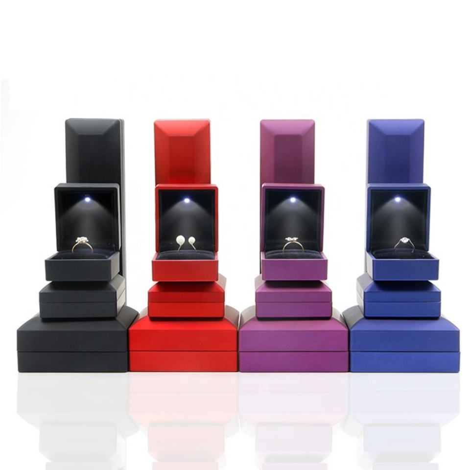Custom LED Rectangle Jewelry Box Set for Necklace Bracelet Ring Packaging Made From Velvet Plastic or PU