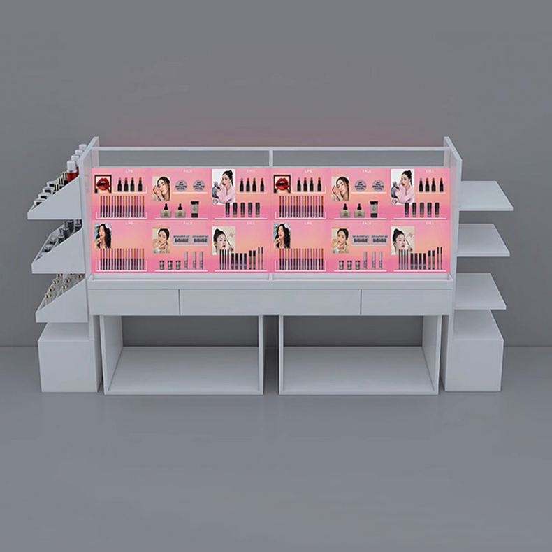 Custom LED White Baked Paint Cosmetic Display Rack for Beauty Store Custom LED White Baked Paint Cosmetic Display Rack for