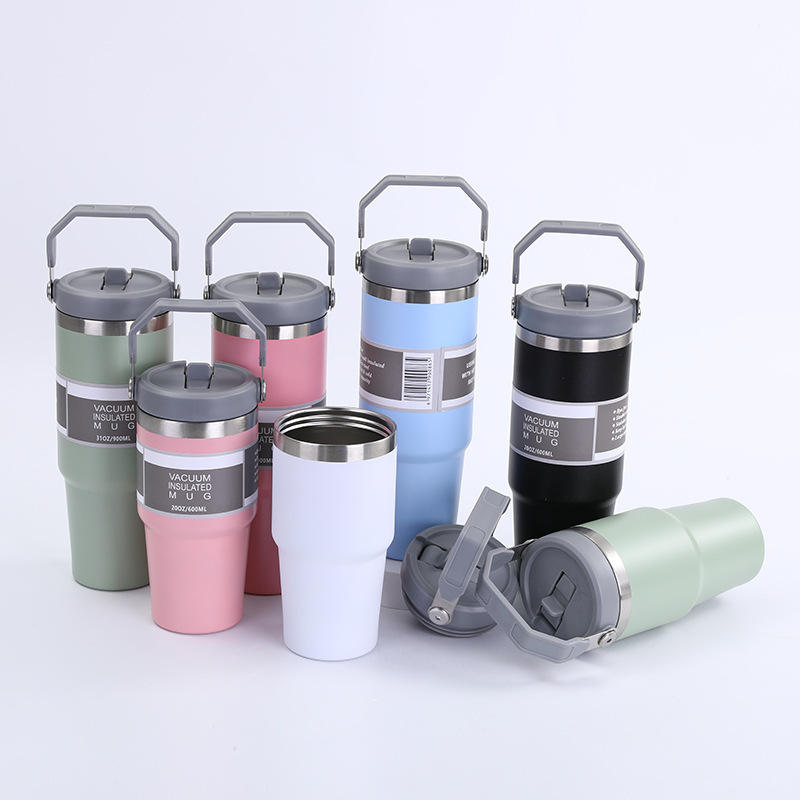 Custom LOGO 30 oz Gradient Colors Portable Double Wall Stainless Steel Insulated Coffee Tumbler Bottle With Handle