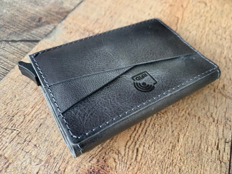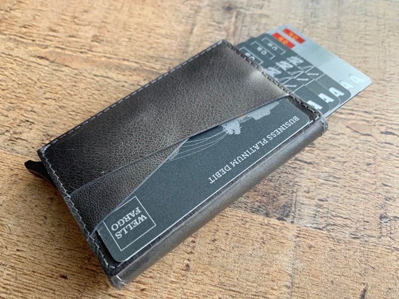 Custom LOGO Genuine Leather Waterproof Short Cover Credit Card Holder Unisex Pop up MCR-0163