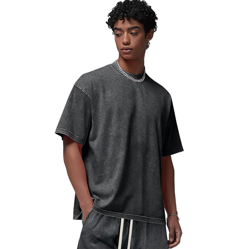 Custom LOGO High Quality Oversize Acid Wash T Shirt and Cotton Shorts 2 Piece Sets Oversize Tee Shirt Men'S T-Shirts Set