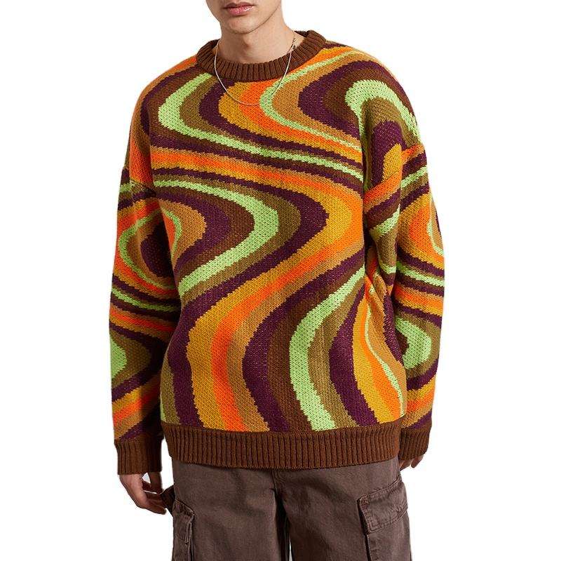 Custom LOGO Men Sweater Jacquard Pattern Knitwear Crew Neck Pullover Casual Knitted Jumper Winter Cartoon Graphic Custom Sweater