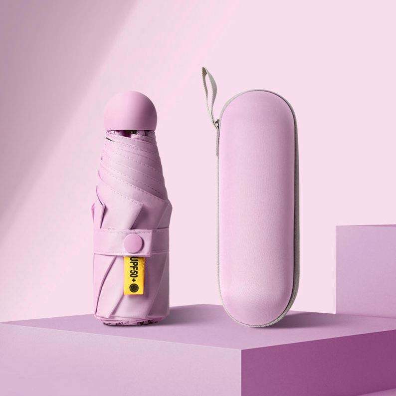 Custom LOGO Mini Compact Pocket Umbrella with Storage EVA Case Sunshade UV Rain Folding Umbrella Waterproof Windproof