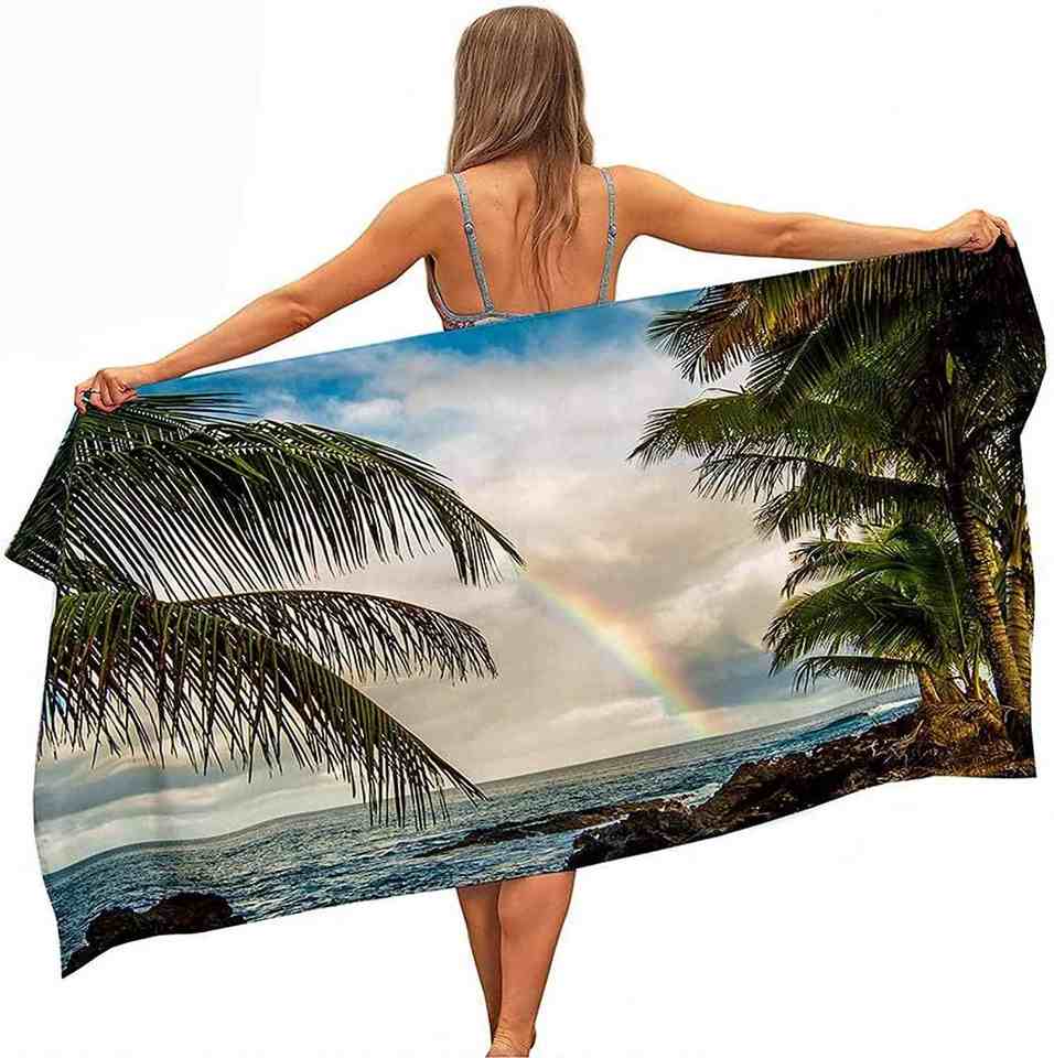 Custom LOGO Summer Large Rectangle Recycled Polyester Microfiber Quick Dry Beach Swimming Surf Bath Pool Towel
