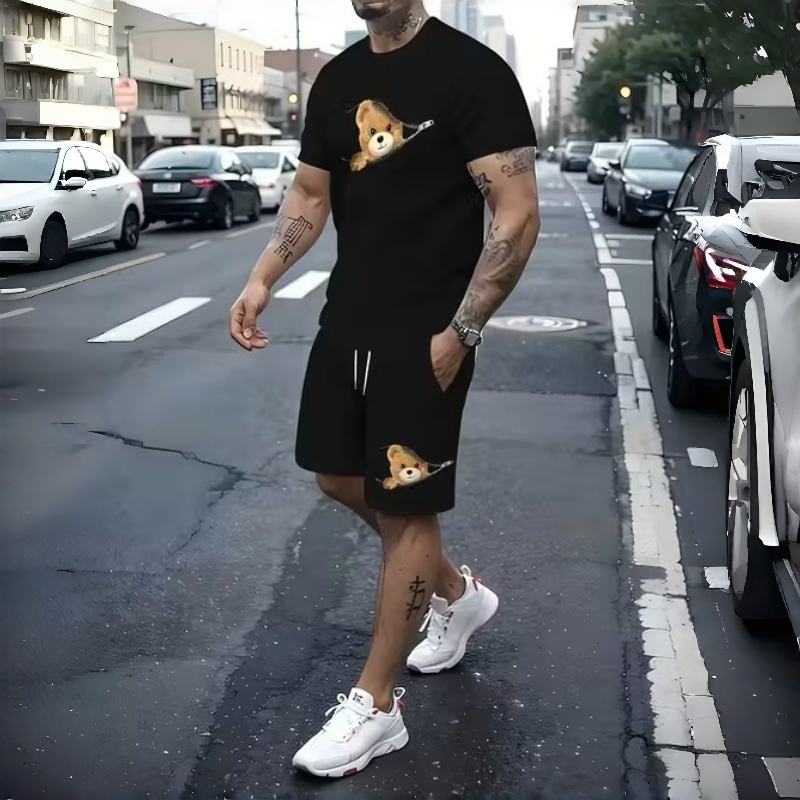 Custom LOGO T-Shirts Set High Street Casual OEM ODM Men's T-Shirts Set Street Retro Printed Man Short Sleeve Tee Set