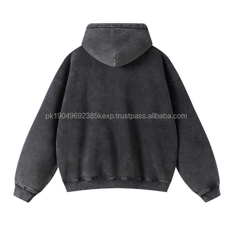 Custom LOGO acid wash hoodie Men's 100% Cotton Heavy Weight hoodie black Puff Printing Oversized streetwear zip up Hoodies
