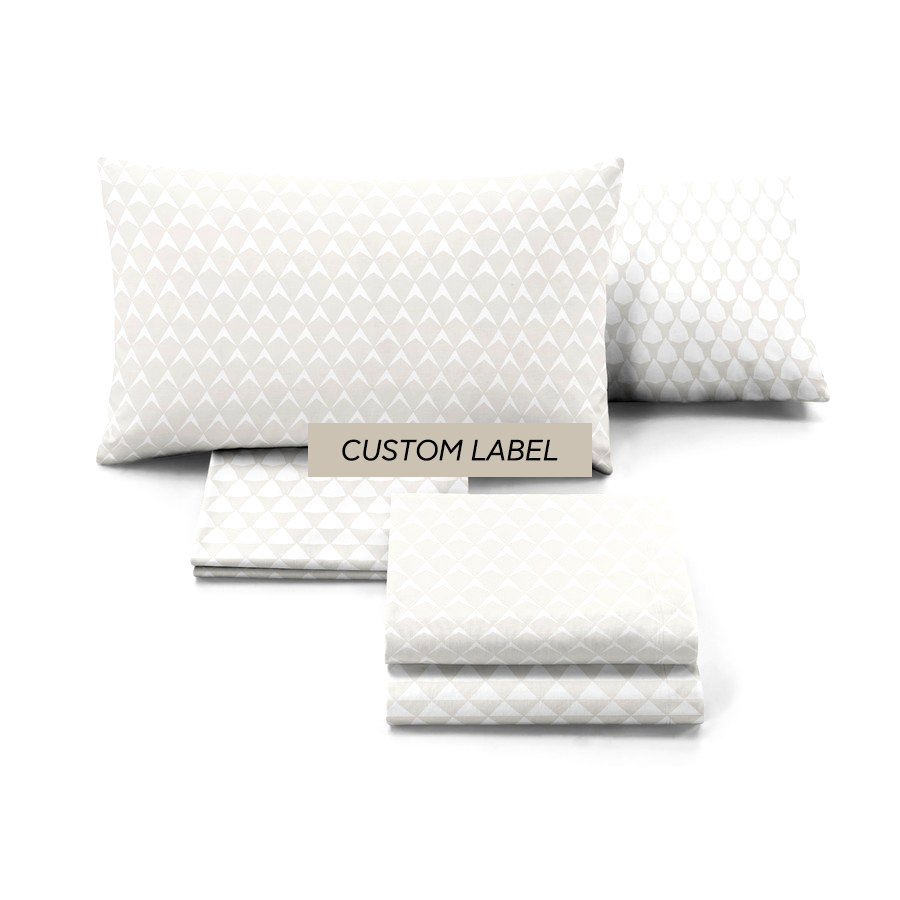 Custom Label Bed Sheet Set in 100% Cotton Printed Yellow Pillowcases Fitted Sheet Top Sheet High Quality Made in Italy