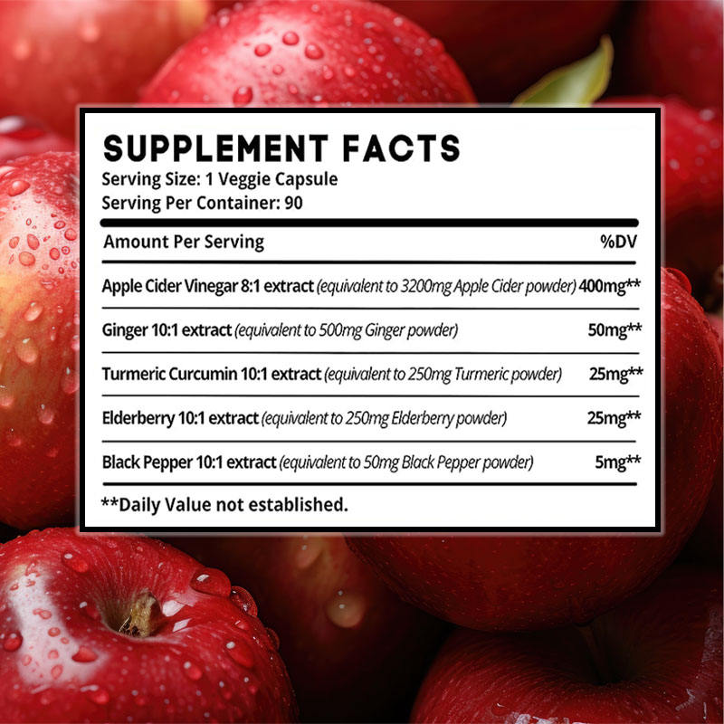 Main Ingredient:Apple Cider Vinegar Extract, Ginger Extract, Turmeric Curcumin Extract, Elderberry Extract, Black Pepper Extract