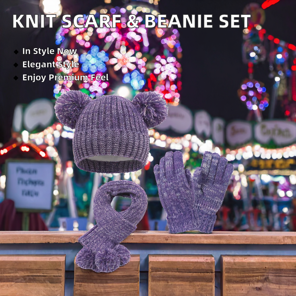 Custom Label Jacquard Knitted Scarf Set for Women and Men Winter Warm Solid Beanie Long Acrylic Scarf Glove-Winter Accessory
