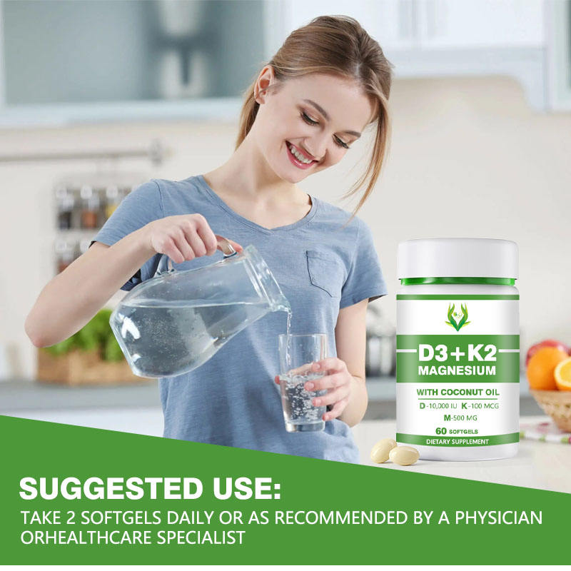 Custom Label Vitamin D3 K2 Magnesium Softgels Improved Bone Density Promote Development with Coconut Oil