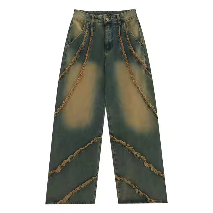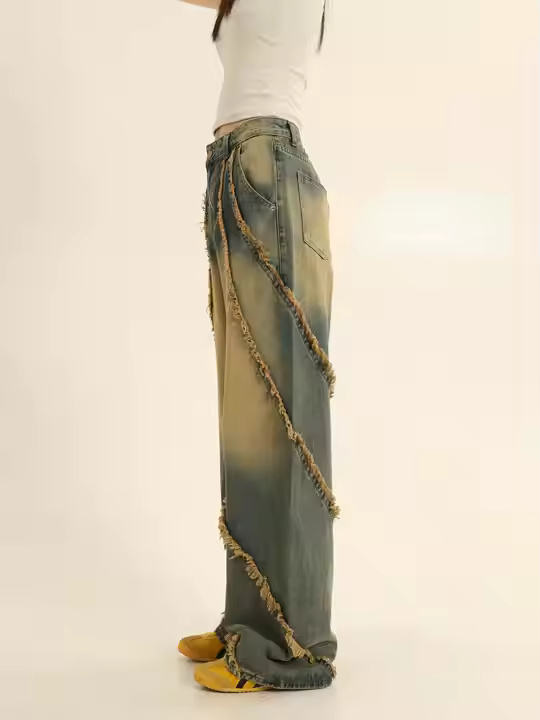 Custom Ladies Baggy Pant High Waist Fashionable Pocket Sun Faded Denim Jeans Oversize Women's Cargo Jeans Pants